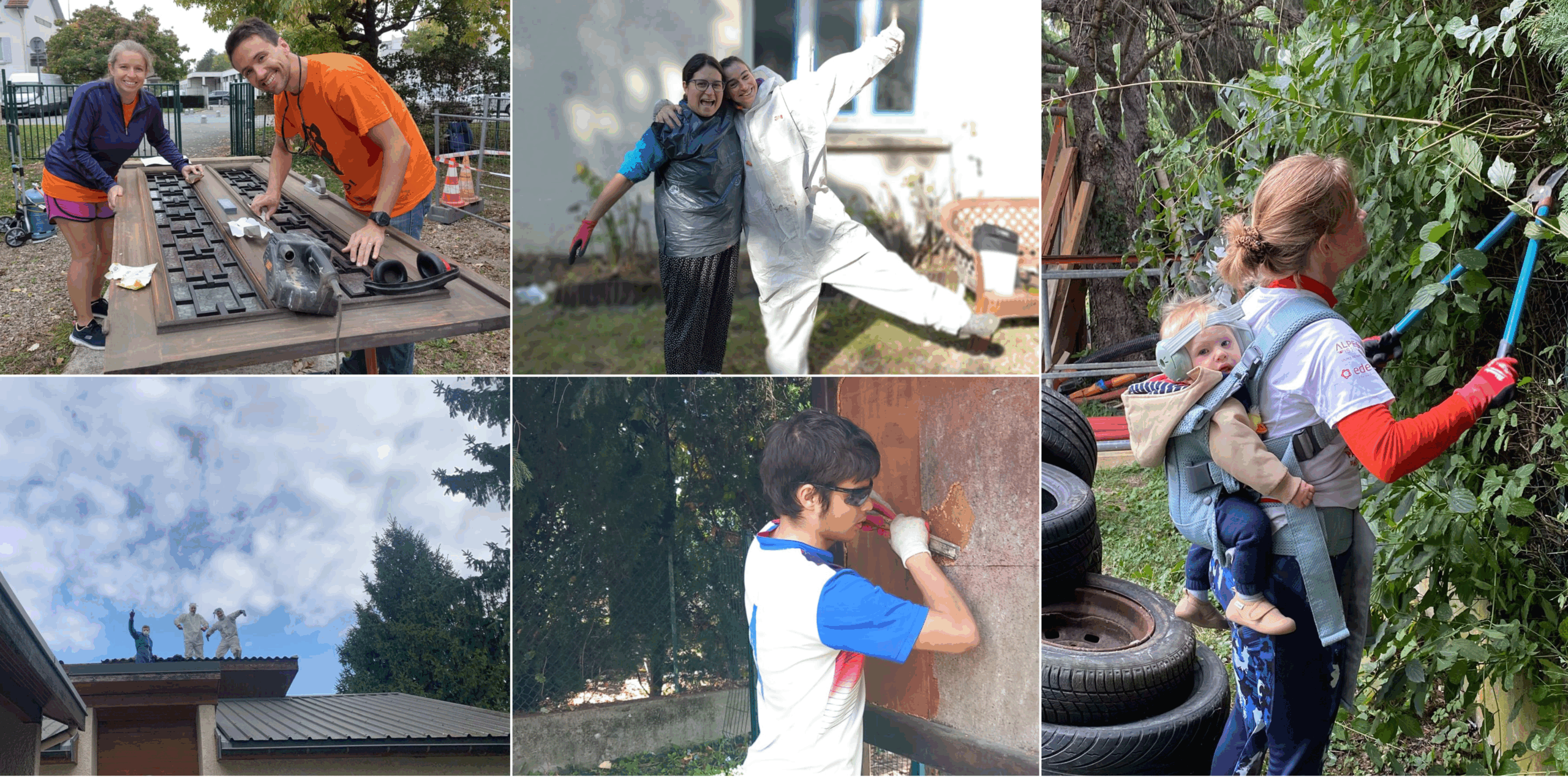 nous réalisons les petits travaux au fur et a mesure en nous réunissant à tours de rôles les samedis. Nous oeuvrons à refaire le jardin, les peinture, les sols …
