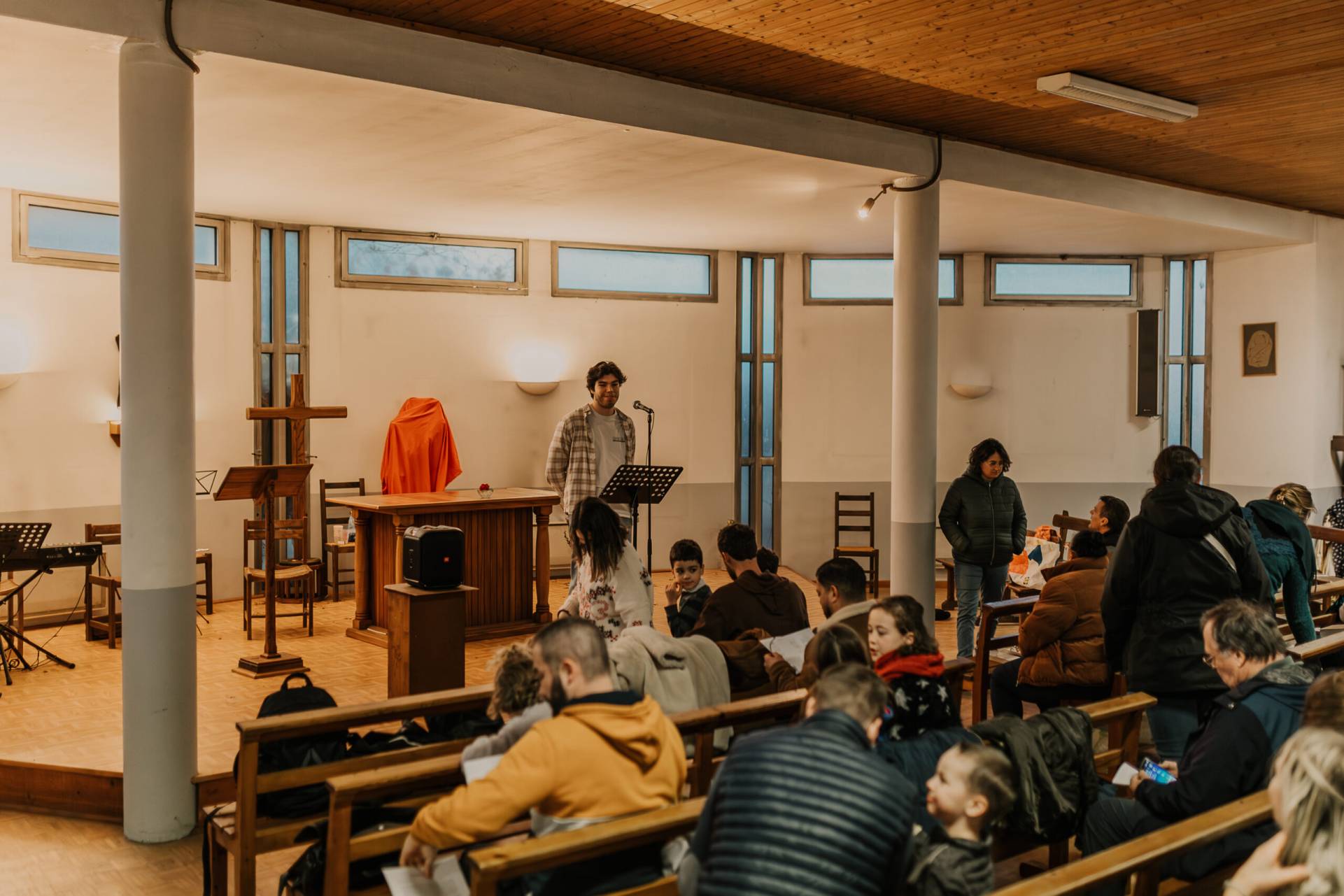 Nous nous réunissons en assemblée pour un culte à la chapelle Saint-Bernard afin de discerner collectivement si ce lieu conviendrait à notre communauté.